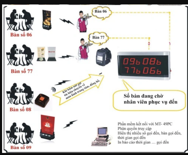 Sự tiện lợi của hệ thống chuông gọi phục vụ không dây kết nối với máy tính